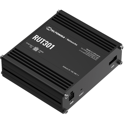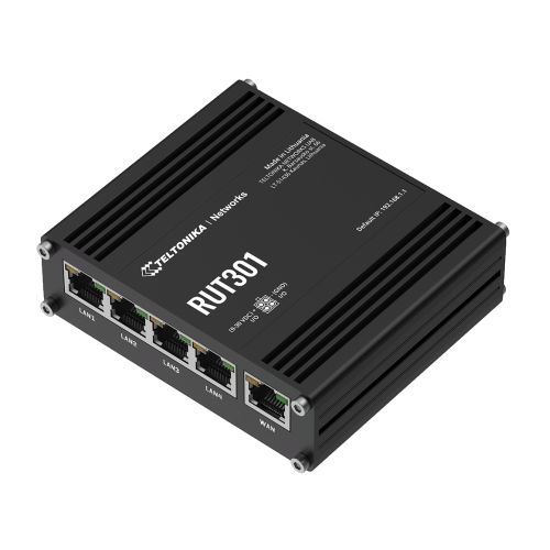 RUT301 este unul dintre cele mai rentabile routere Ethernet industriale de pe piata IoT, oferind conectivitate robusta la retea cu caracteristici avansate de securitate. Acest router Ethernet vine cu cinci porturi Ethernet, doua I/O digitale configurabile si un port USB 2.0 pentru conformitate usoara cu echipamentele industriale, de intreprindere sau de retail. In plus, RUT301 are un firewall preconfigurat si suporta multiple protocoale de comunicatie industriala.