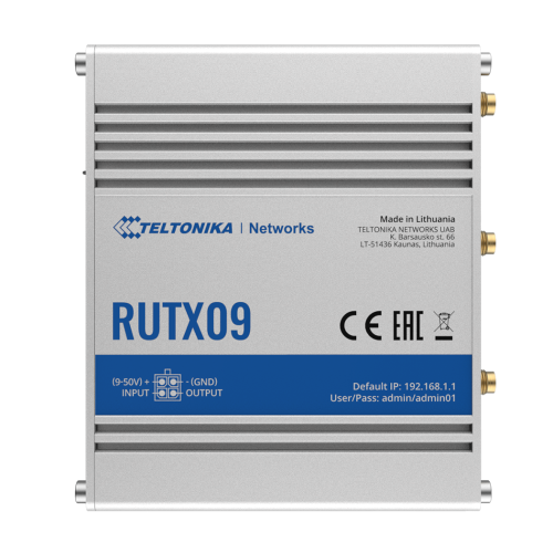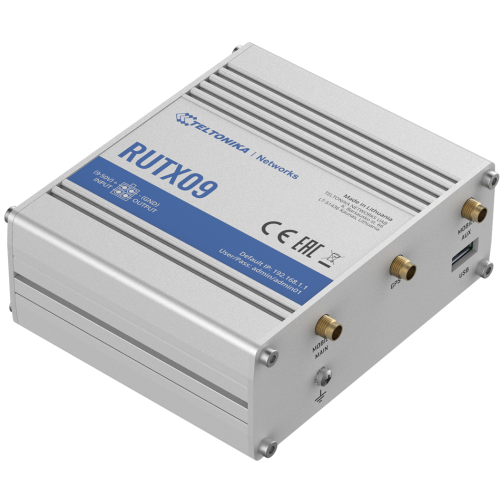 RUTX09 este un router IoT celular LTE-A Cat 6 cu Dual-SIM, agregare de purtator si 4 interfete Gigabit Ethernet. Este conceput ca o sursa de internet principala/de rezerva care ofera servicii celulare viteze de pana la 300 Mbps, in cazul in care este necesara o conexiune constanta si un debit mare de date. Dispune de o capacitate de procesare suficienta pentru aplicatii personalizate pe sistemul RutOS bazat pe OpenWrt. Sunt disponibile o multime de functii de securitate, cum ar fi Firewall, VPN, IPsec, SNMP, filtrare de continut pentru o siguranta maxima. Acest produs este compatibil cu sistemul de gestionare la distanta pentru monitorizare, întretinere si colectare de date convenabile.