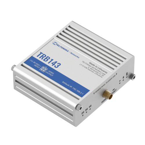Gateway-ul industrial TRB143 a fost proiectat cu o interfata M-Bus integrata special pentru aplicatii de telemetrie si monitorizare utilitati. Dispune de conectivitate celulara si cu fir, un port Ethernet Gigabit si un set de intrari/iesiri digitale, facandu-l potrivit pentru diverse scenarii de monitorizare a mediului.