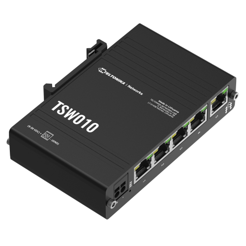 TSW010 ofer? cea mai accesibil? modalitate de extindere a conectivit??ii de re?ea c?tre mai multe dispozitive Ethernet. Cinci porturi Ethernet de 10/100 Mbps asigur? o conectivitate stabil? ?i fiabil?, suficient? pentru majoritatea aplica?iilor industriale în care nu este necesar un throughput ridicat.