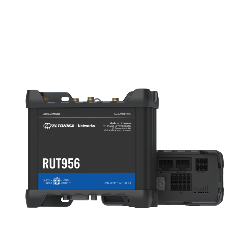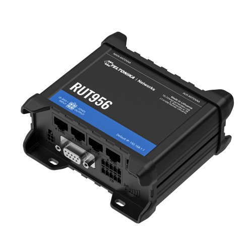 RUT956 este un router industrial care combina optiuni de conectivitate celulara, Wi-Fi si cablata, cu failover automat al WAN-ului si capacitati GNSS. Interfetele de comunicare seriala permit integrarea unui numar mai mare de dispozitive diverse în ecosistemul solutiei, in timp ce I/O si software-ul RutOS avansat faciliteaza controlul echipamentelor, automatizarea si notificarile privind evenimentele.